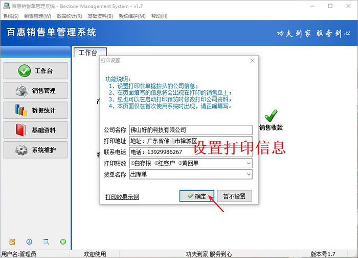 第一次登录的时候可以设置打印抬头,设置好公司信息点击确定。